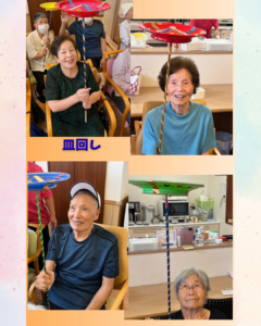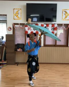 ご主人による傘回し、南京玉すだれ、こま回し、
