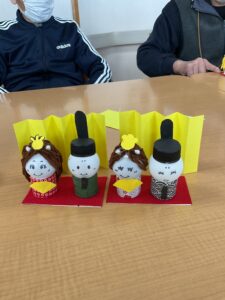 2月16日・26日に、ひな人形作りをしました。表情豊かなお内裏様とお雛様がたくさんできました。